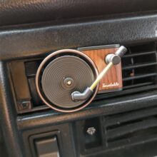With a retro wood design, gold magnetic head, textured base, and vinyl record detail, this car accessory can take you back to an era of record players and oldie classics. The freshener is made of real wood, metal, and aluminum for a premium feel and look. Whether you have an old-school whip or modern sports coupe, a touch of 60s and 70s retro will have you driving with a classic style.